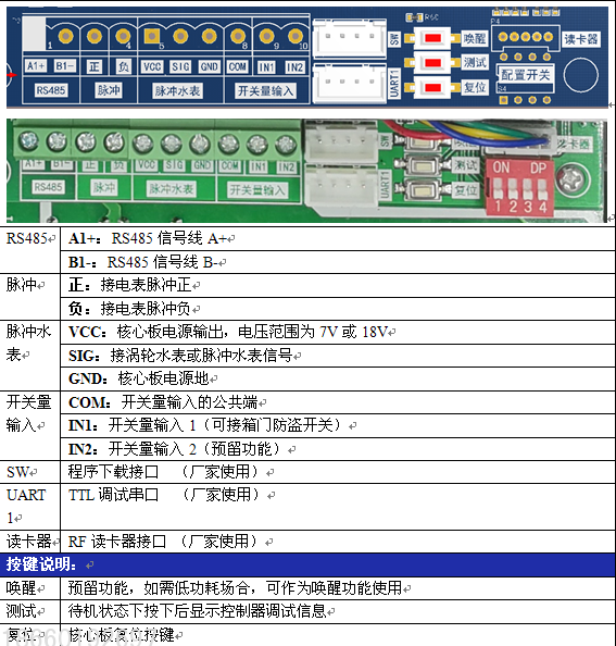 水资源灌溉控制器:具有刷卡计费功能 一机多卡 一卡多机,有良好的人机交互功能,简单易用。用户只需要在管理机上制造设置卡即可完成系统的配置,无需经过任何繁琐的操作。产品集成了RF射频模块,可以识别多种协议射频卡,集成GPRS \4G通讯模块,设备上电自动网络对时,获取基站定位,实时上传系统数据,比如上传用水量,用电量等,内置LCD显示屏,可显示中英文和图形,方便用