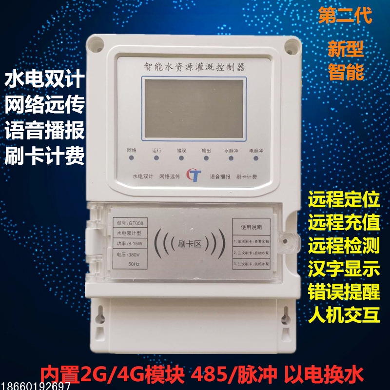 本产品可以网络远传水量电量数据到指定水利局平台,具有刷卡计费、语音播报等功能